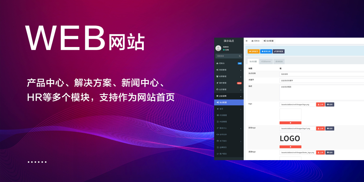 产品、新闻、HR等多个模块,支持作为网站首页